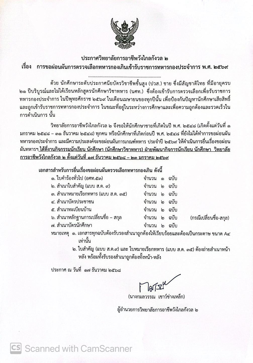 การขอผ่อนผันการตรวจเลือกทหารกองเกินเข้ารับราชการทหารกองประจำการ พ.ศ. ๒๕๖๙