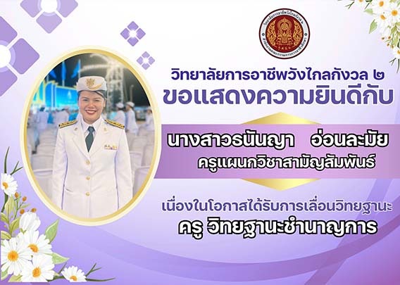 ยินดีต้อนรับเข้าสู่เว็บไซต์ วิทยาลัยการอาชีพวังไกลกังวล ๒ Wangklaikangwon Industrial and Community Education College2