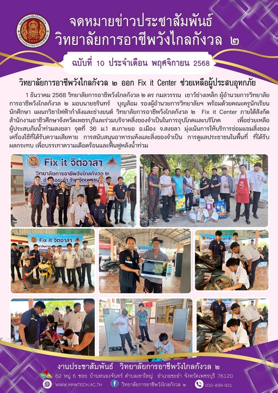 วิทยาลัยการอาชีพวังไกลกังวล ๒ ออก Fix it Center ช่วยเหลือผู้ประสบอุทกภัย