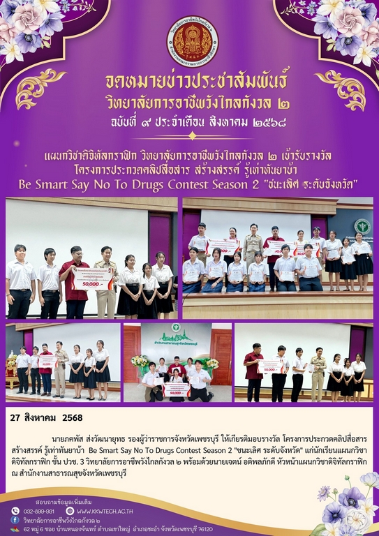 แผนกวิชาดิจิทัลกราฟิก เข้ารับรางวัล โครงการประกวดคลิปสื่อสาร สร้างสรรค์ รู้เท่าทันยาบ้า