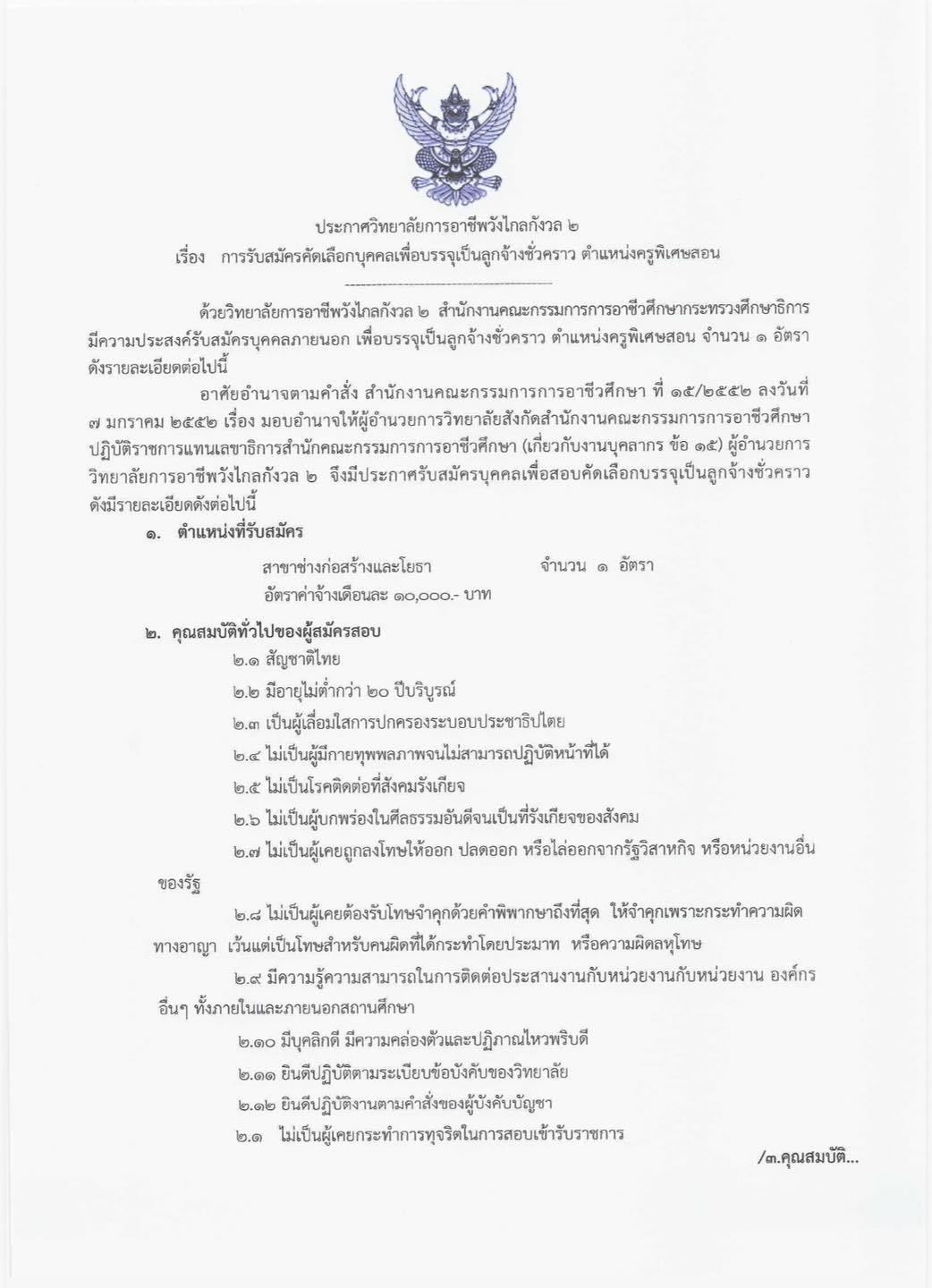 การรับสมัครคัดเลือกบุคลเพื่อบรรจุเป็นลูกจ้างชั่วคราว สาขาช่างก่อสร้างและโยธา