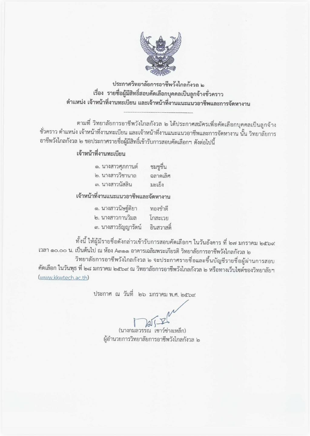 รายชื่อผู้มีสิทธิ์สอบคัดเลือกบุคคลเป็นลูกจ้างชั่วคราว ตำแหน่ง จนท.งานทะเบียน และจนท.งานแนะแนว