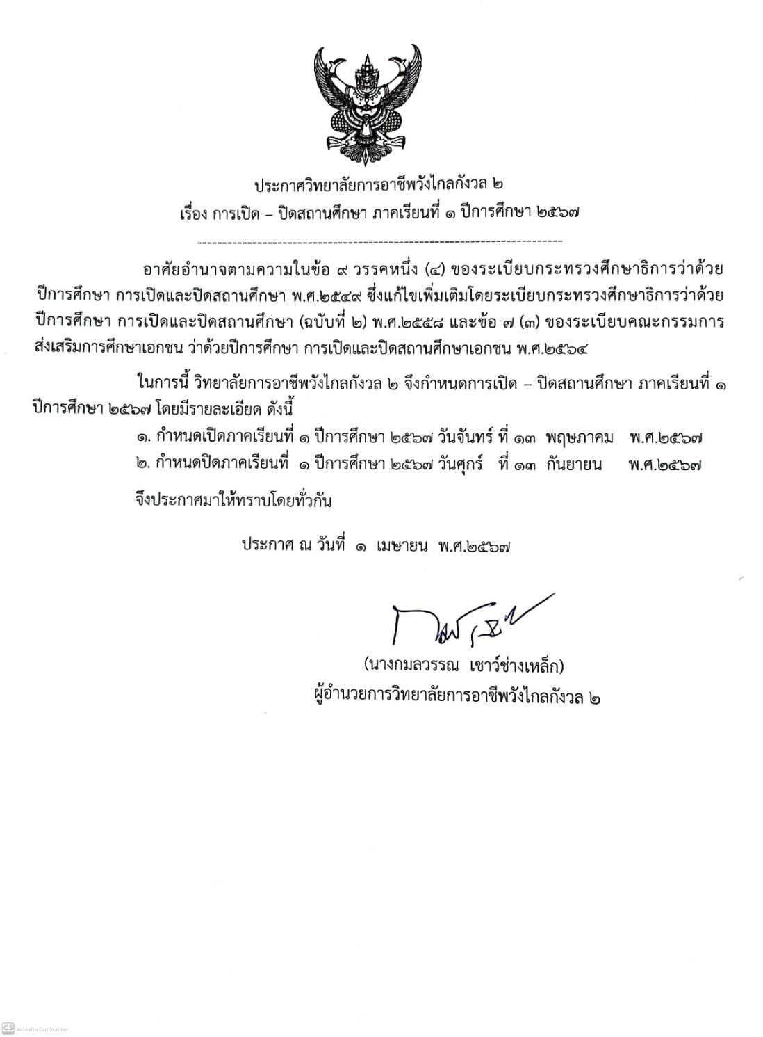 การเปิด-ปิดสถานศึกษา ภาคเรียนที่ 1 ปีการศึกษา 2567